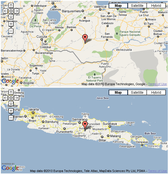 Hmmm, bagaimana dengan kota Solo (penulis punya banyak kenangan di sini) ? Wah, nembus di Venezuela, jack!* San Fernando, Venezuela <-----------------> Solo (Surakarta)